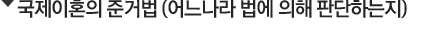 국제이혼의 준거법은 국제이혼사건에 있어서 구체적으로 적용되는 법률을 말합니다. 국제사법은 이혼의 준거법에 관하여 먼저 부부의 동일한 본국법에 의하고, 국적이 다른 부부로 동일한본국법이 없는 경우에는 부부의 동일한 상거소지법에 의하고, 부부의 동일한 상거소지법도 없는 경우 부부와 가장 밀접한 관련이 있는 곳의 법을 준거법으로 하고 있습니다.